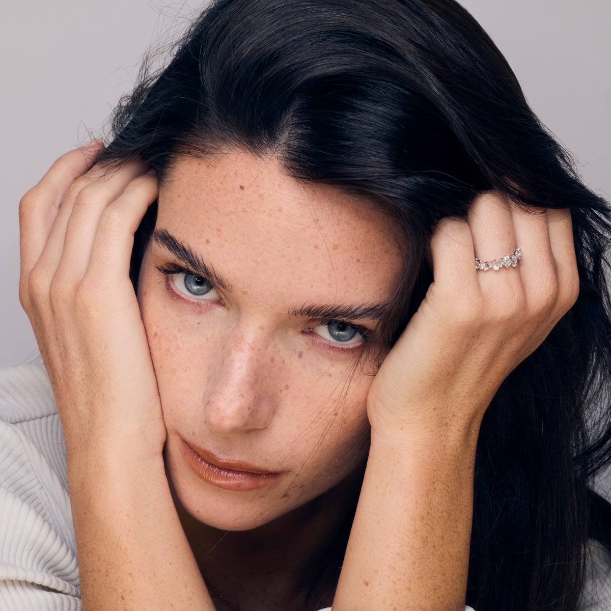 L'ensemble de l'alliance offre une esthétique contemporaine, mêlant des formes classiques et un design libre, pour une pièce de joaillerie qui allie sophistication et modernité.
