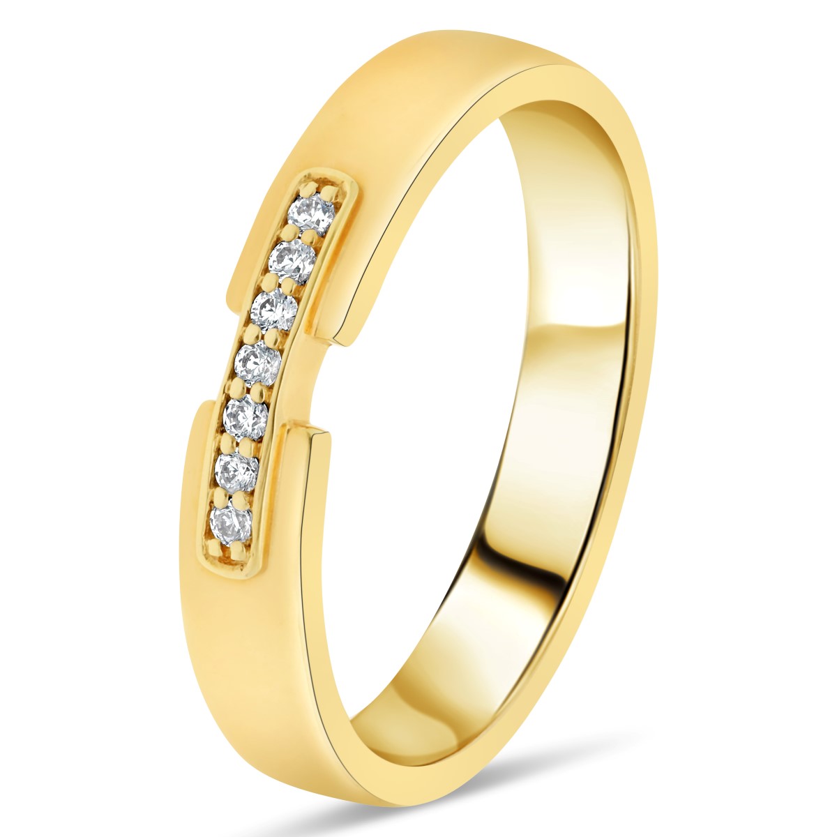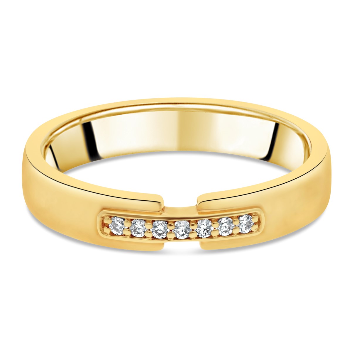 Moderne et élégante, l’alliance Pont en or jaune 750 se distingue par son anneau ouvert à la finition brillante, délicatement interrompu sur le dessus. Les deux extrémités sont reliées par un pont en or jaune pavé de petits diamants, apportant une touche lumineuse et symbolique à ce design contemporain.