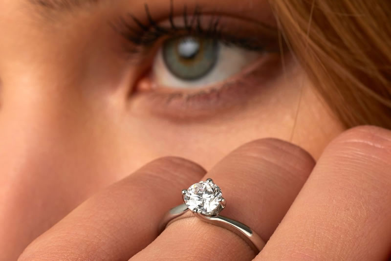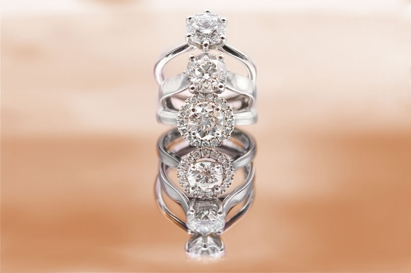 Nous proposons généralement des diamants certifiés de couleur D à F et quelques pierres en G ou H.