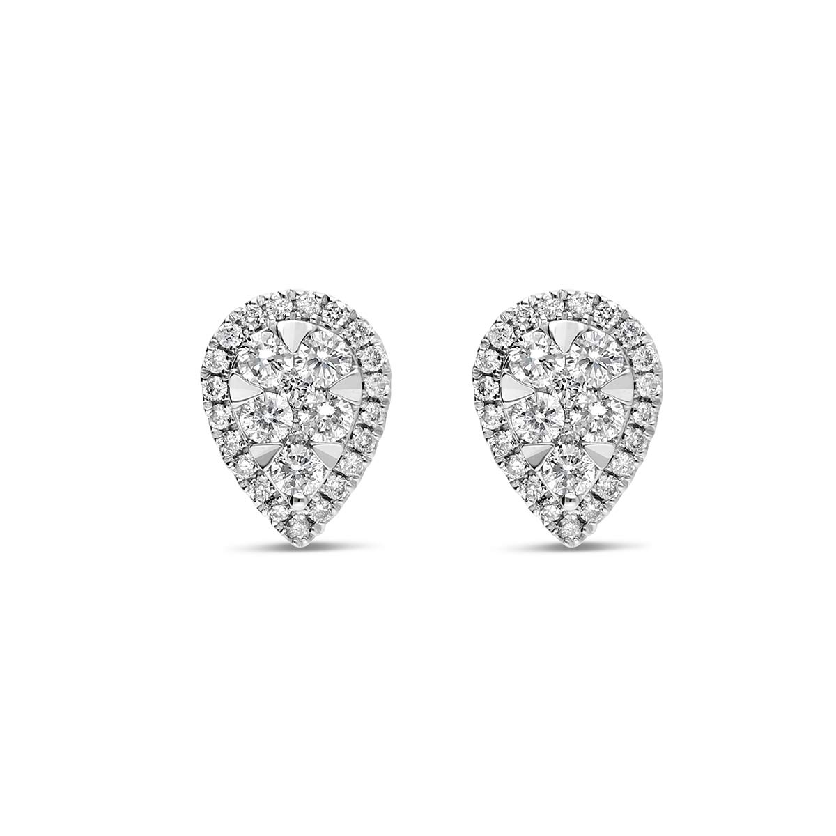 Boucles d'oreilles en diamants et or 750/1000 en forme de cœur, dont les dimensions sont : 7,2 mm (au point le plus large) sur 9,6 mm.