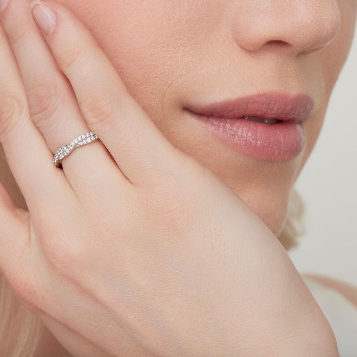 "Torsadée Diamants" est une alliance en or blanc 18 carats ornée de diamants de qualité HSI sertis sur son demi tour en grain. Ses courbes diamantées en forme de symbole de "l'infini" lui donnent un aspect original et sensuel.