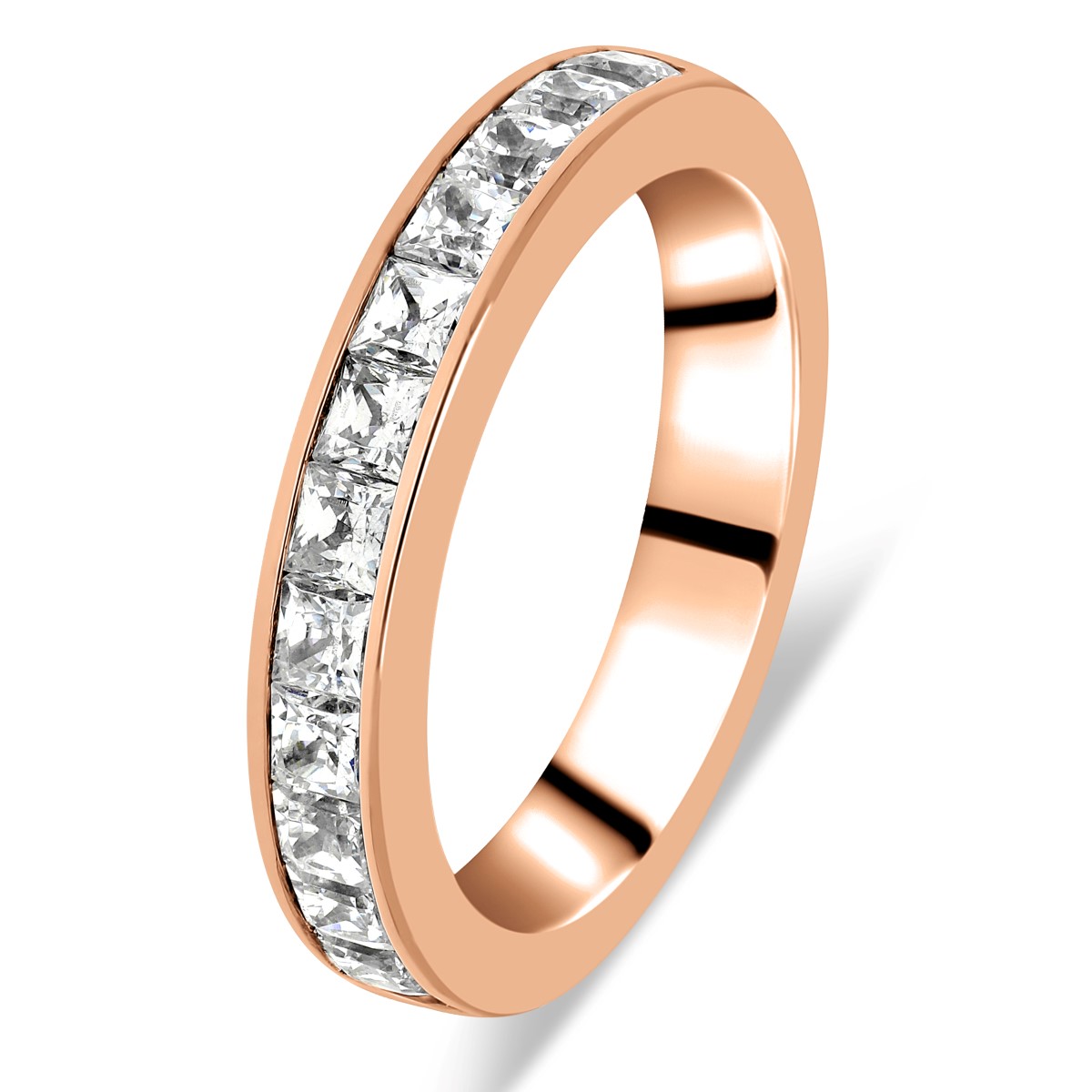 Alliance Diamants Demi Tour pour femme, sertie de diamants GVS taille princesse. Les diamants sont enchâssés dans de fins rails de métal. Cette alliance se décline en plusieurs versions de poids carat. Vous pouvez également choisir entre platine, or blanc ou or jaune 18 carats.