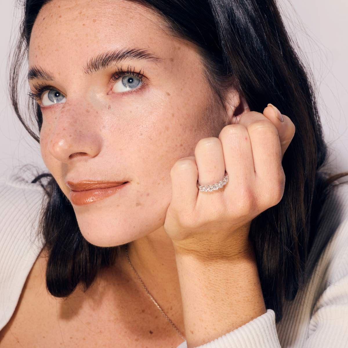 Notre alliance "Kore" au design raffiné se distingue par ses 7 diamants ovales, sertis avec une légère inclinaison, ce qui apporte une touche originale et dynamique à la bague.