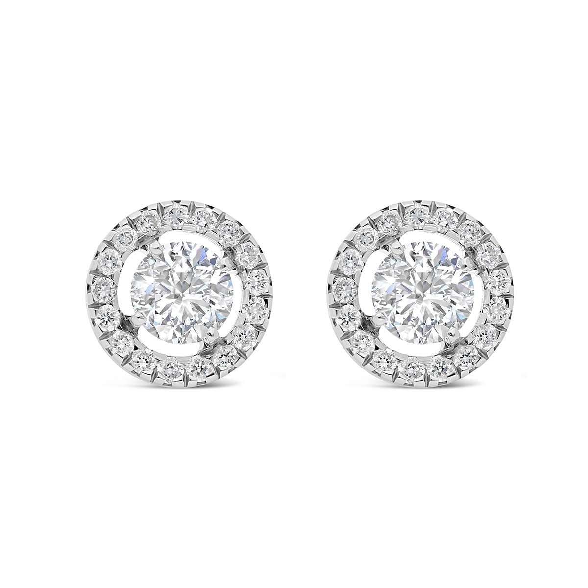 Élégantes et lumineuses, les boucles d’oreilles Barbade en or blanc 750 millièmes mettent en valeur un diamant central serti par quatre griffes, entouré d’un halo rond de petits diamants. Un léger espace entre la pierre principale et le halo crée un effet aérien qui renforce la brillance et apporte une touche de modernité.