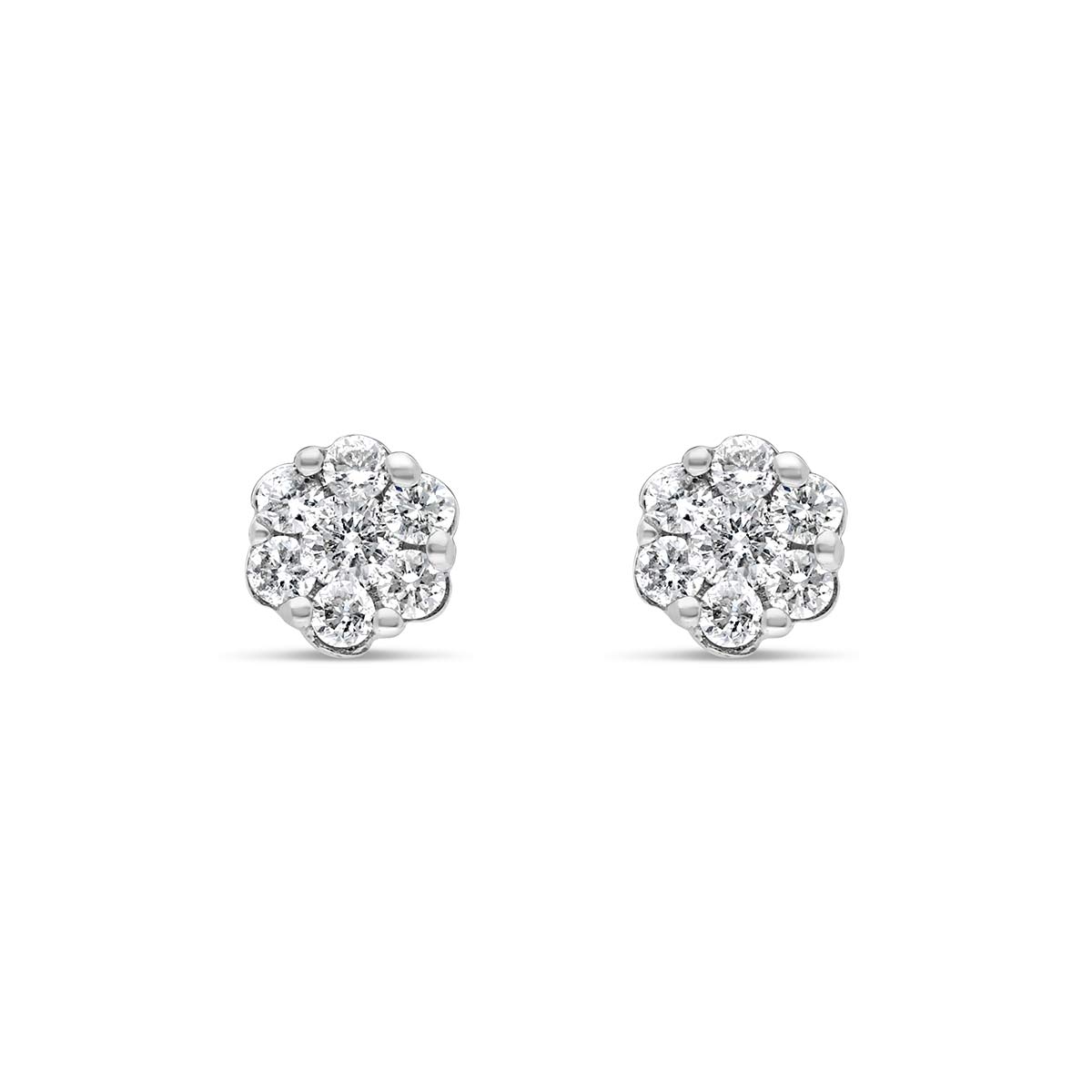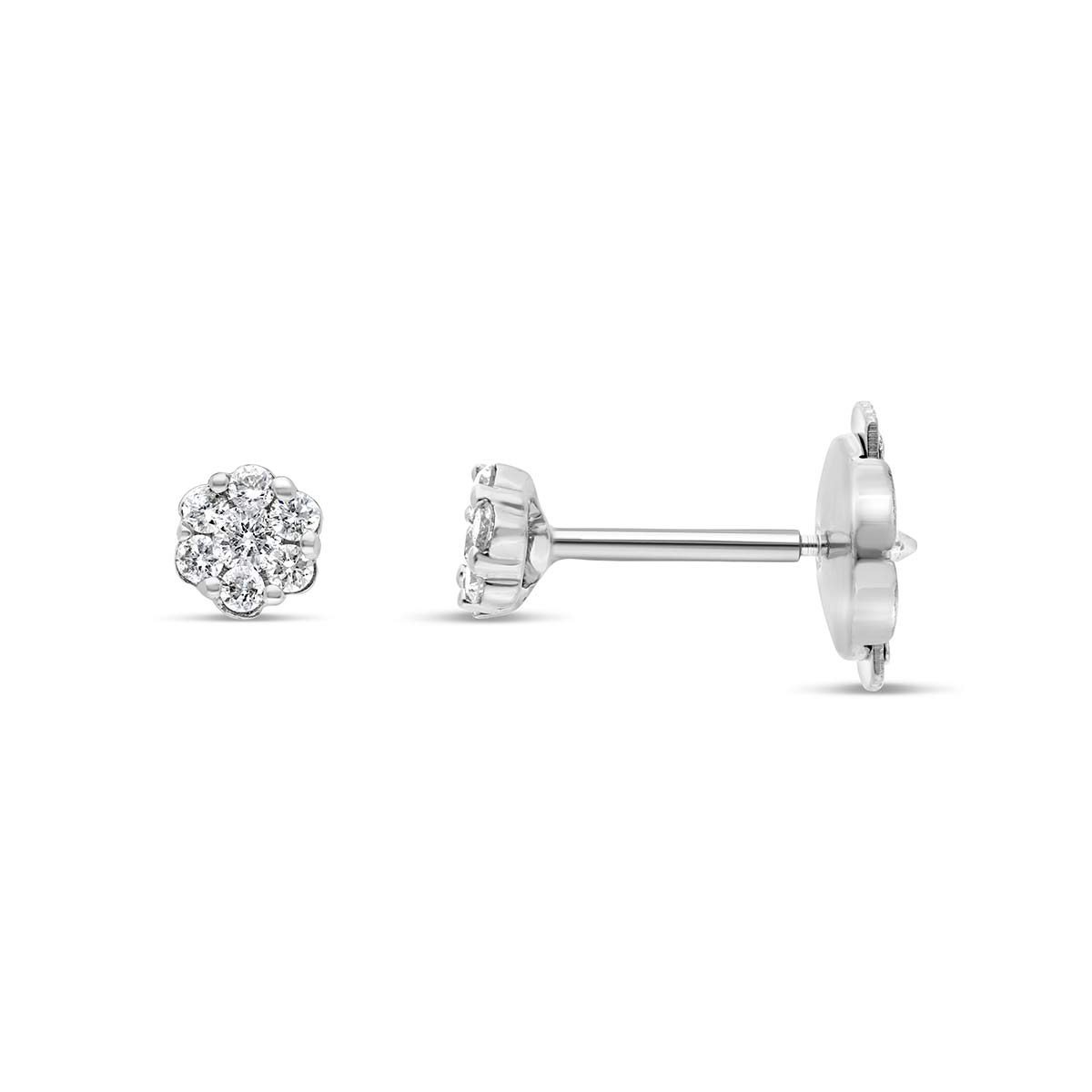 Clous d'oreille en diamants, pavés en fleur.  Les clous sont pourvus d'un fermoir de sécurité. Le diamètre est de 4,0 mm.